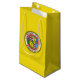Paper bag with flag of Honolulu, Hawaii; yellow flag with charged with seal of Honolulu