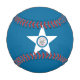 Baseball with flag of Houston, Texas; blue flag with seal of Houston in a white star, with an illustration of a train