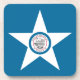 Coasters with flag of Houston, Texas; blue flag with seal of Houston in a white star, with an illustration of a train