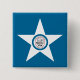 Square Button with flag of Houston, Texas; blue flag with seal of Houston in a white star, with an illustration of a train
