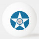 Ping pong ball with flag of Houston, Texas; blue flag with seal of Houston in a white star, with an illustration of a train