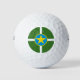Golf balls with flag of Jackson, Mississippi; green flag with yellow star in a blue circle