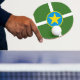 Ping pong paddle with flag of Jackson, Mississippi; green flag with yellow star in a blue circle