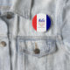 Round Button with flag of city of Cleveland, Ohio; flag with three vertical bands of red, white and blue with seal of the city in the centre