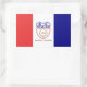 Sticker with flag of city of Cleveland, Ohio; flag with three vertical bands of red, white and blue with seal of the city in the centre