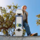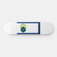 Skateboard with a design with the flag of Colorado Springs, Colorado. A white and blue flag