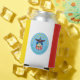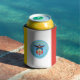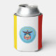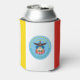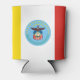 Can cooler with flag of city of Columbus, Ohio; flag with three vertical bands of yellow, white and red with blue seal of the city with bald eagle in the centre