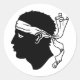 The flag of Corsica portrays a Moor's head in black wearing a white bandanna above his eyes on a white background. The flag of Corsica is a symbol of freedom.