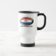 The Croatian flag sits inside of a metal frame. Two steel rivets punch through the oval frame on either side of the flag. The bright highlights on the steel and a shadow under the frame gives the pattern a 3D effect that makes it jump off the surface of the mug. The word CROATIA is written under the frame in bold, black, highlighted letters. This simple yet strong design is a stylish way to show your patriotism.