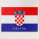 This puzzle features the flag of Croatia with the Croatian coat of arms and a customisable text "CROATIA" in white font on the blue stripe.