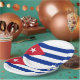 This design features the national flag of Cuba (officially the Republic of Cuba), which is a country comprising the island of Cuba as well as Isla de la Juventud and several minor archipelagos. Cuba is located in the northern Caribbean where the Caribbean Sea, Gulf of Mexico and Atlantic Ocean meet. The national flag of Cuba consists of five alternating stripes (three blue and two white) and a red equilateral triangle at the hoist, within which is a white five-pointed star. It was first designed in 1842 and officially adopted in 1902.