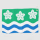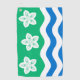 Golf Towel with design with a flag of historic county of Cumberland, in England, Great Britain; green flag with three Parnassus flowers and white and blue waves
