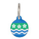 Pet Tag with design with a flag of historic county of Cumberland, in England, Great Britain; green flag with three Parnassus flowers and white and blue waves