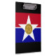 Clipboard with flag of city of Dallas, Texas; flag with red and blue horizontal bands with seal of the city inside of a white star in the centre