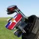 Golf putter cover with flag of city of Dallas, Texas; flag with red and blue horizontal bands with seal of the city inside of a white star in the centre