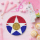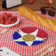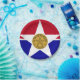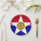 Paper Plate with flag of city of Dallas, Texas; flag with red and blue horizontal bands with seal of the city inside of a white star in the centre
