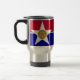 Travel Mug with flag of city of Dallas, Texas; flag with red and blue horizontal bands with seal of the city inside of a white star in the centre
