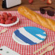 Paper Plate with a design with a design with the flag of Dayton, Ohio. A green, blue, and white flag