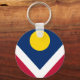 Keychain with the flag of Denver, Colorado. A blue, red, and white flag with a yellow sun