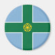 This design features the historic flag of the county of Derbyshire, which is located in the East Midlands of England. A large part of the Peak District National Park lies within the county of Derbyshire, and the Pennine range of hills which extends into the north of the county. Derbyshire borders West Yorkshire to the north; South Yorkshire to the north-east; Nottinghamshire to the east; Leicestershire to the south-east; Staffordshire to the west and south-west; Cheshire also to the west; and Greater Manchester to the north-west. Kinder Scout, at over 2,000 feet, is the highest point in the county. Major settlements in the traditional county of Derbyshire include Derby, Chesterfield, Long Eaton, Ilkeston, Swadlincote, Belper, Dronfield, Buxton, Ripley, Staveley, Glossop, Heanor, Bolsover and Eckington.