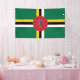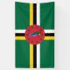 This design features the national flag of Dominica (officially known as the Commonwealth of Dominica), which is an island country in the Caribbean. The island is located near Guadeloupe to the northwest and Martinique to the south-southeast. The capital city of Dominica is Roseau, which is located on the western side of the island and is also its largest city. The national flag of Dominica contains an image of the sisserou parrot, which is found only on Dominica and is the island's national bird.