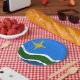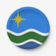 Paper Plate with a design with the flag of Duluth, Minnesota. A blue, green, and white flag with a yellow star