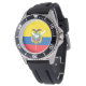 This design features the national flag of Ecuador (officially known as the Republic of Ecuador), which is a country in northwestern South America. Ecuador is bordered by Colombia on the north, Peru on the east and south and the Pacific Ocean on the west. Ecuador also includes the Galápagos Islands in the Pacific. The capital and largest city of Ecuador is Quito. Other major cities in Ecuador are Guayaquil, Cuenca, Santo Domingo, Ambato, Portoviejo, Durán, Machala, Loja and Manta.