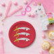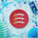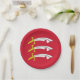 Paper plate with design with a flag of historic county of Essex, in England, Great Britain; red flag with three white, gold hilted Saxon swords (Seaxes)