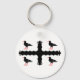 Keychain with design with a flag of historic county of Flint, in Wales, Great Britain; white flag with a black engrailed fleury cross and four choughs
