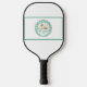Pickleball Paddle with a design with the flag of Pembroke Pines, Florida. A white flag with a green city seal in the centre