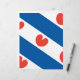 Flag of Friesland, a province in The Netherlands. It consists of blue and white diagonal stripes; in the white stripes are red pompeblêden, leaves of the yellow water-lily, that may remind one of hearts, but according to the official instructions "should not be heart-shaped".