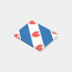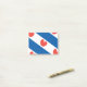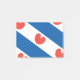 It consists of blue and white diagonal stripes; in the white stripes are red pompeblêden, leaves of the yellow water-lily, that may remind one of hearts, but according to the official instructions "should not be heart-shaped".
