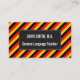 This business card design features a pattern of stripes (or lines) coloured black, red or yellow. These colours were inspired by those of the national flag of Germany. This could be a great gift for somebody from Germany, or even for somebody who just really likes the country of Germany a lot. The front also features a dark-coloured rectangular shaped area containing a name and a profession/role/title/position that can both be personalised. The back features a simple design including a name, a profession/role/title/position, and contact details that can be personalised. This business card design could be used by a professional, or perhaps by a small business owner. [~Z0000061]