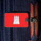 Luggage Tag with flag of Hamburg, red flag with illustration of a white castle with three towers