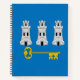 Spiral Notebook with design with flag of Havana, capital city of Cuba, blue flag with three castles and golden key