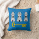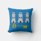 Throw pillow with design with flag of Havana, capital city of Cuba, blue flag with three castles and golden key
