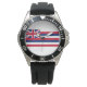 This design features the flag of Hawaii, which is a state of the United States of America located in the Pacific Ocean. It is the only U.S. state located outside of North America; it is also the only island state. The state encompasses nearly the entire Hawaiian archipelago, which consists of 137 volcanic islands. The eight main islands are Niʻihau, Kauaʻi, Oʻahu, Molokaʻi, Lānaʻi, Kahoʻolawe, Maui and Hawaiʻi, after which the state is named. The capital city of Hawaii state is Honolulu.