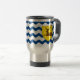 Travel Cup with design with a flag of historic county of Hertfordshire, in England, Great Britain; flag with an illustration of a stag in a yellow shield on white and blue wavy background