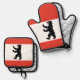 Pot Holder Set with flag of Berlin, state flag with horizontal stripes of red and white, with an illustration of a black bear in the centre