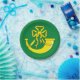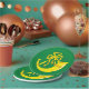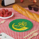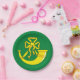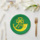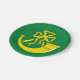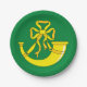 Paper plate with design with a flag of historic county of Huntingdon, in England, Great Britain; green flag with a gold ribboned hunting horn