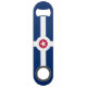 Bottle Opener with flag of city of Indianapolis, Indiana; blue flag with white cross and red circle with white star in the centre