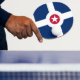 Ping Pong Paddle with flag of city of Indianapolis, Indiana; blue flag with white cross and red circle with white star in the centre