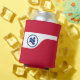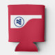 Can Cooler with the flag of Irving, Texas. A white and red flag with a blue symbol