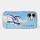 The flag of Israel against a blue sky and clouds. Customize by adding your own text.