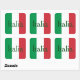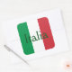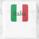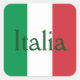 Square sticker with an image of the colours of the flag of Italy and “Italia” printed across it in dark green.