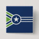 Button with a design with the flag of Jackson, Tennessee. A blue, green, and white flag