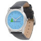 Watch with flag of city of Juneau, Alaska; blue flag with stylized illustration of trees
