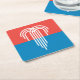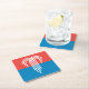 Paper Coaster with a design with the flag of Kansas City, Missouri. A red and blew flag with a stylized white emblem in the center