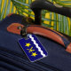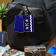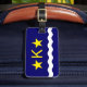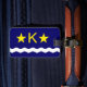 Luggage Tag with design with flag of Kinshasa, capital city of Democratic Republic of Congo, blue flag with white wave, two golden stars and letter ‘K’ in the centre