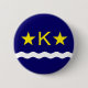 Round Button with design with flag of Kinshasa, capital city of Democratic Republic of Congo, blue flag with white wave, two golden stars and letter ‘K’ in the centre